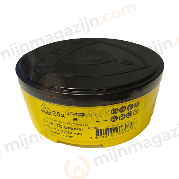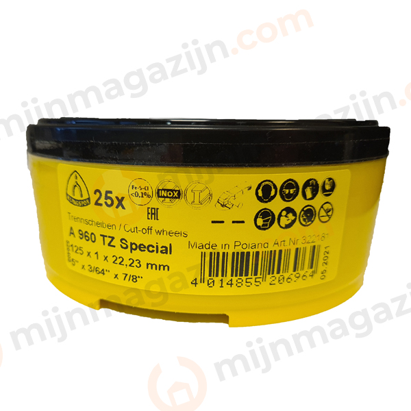 Home1 / Winkel2 / Verspaning3 / Slijpen, schuren en afbramen4 / Doorslijpschijven5 / Doorslijpschijf RVS / Staal6 / 125mm7 / Doorslijpschijf SPECIAL A960TZ 125×1*